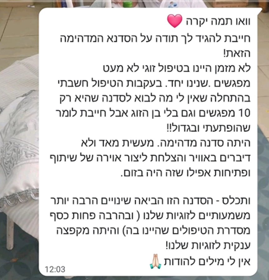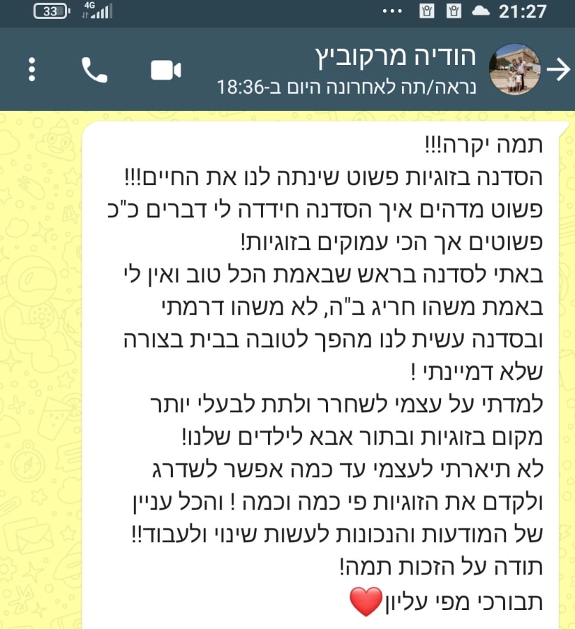 וניצור יחד שינוי אמיתי בדינמיקה הזוגית: יותר קרבה, יותר שקט ויותר שמחה.