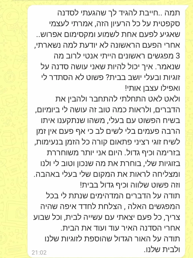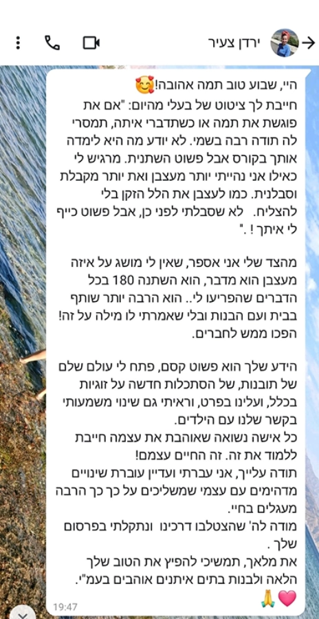 הוא חולל אצלי שינוי אמיתי בתפיסת העולם על זוגיות.